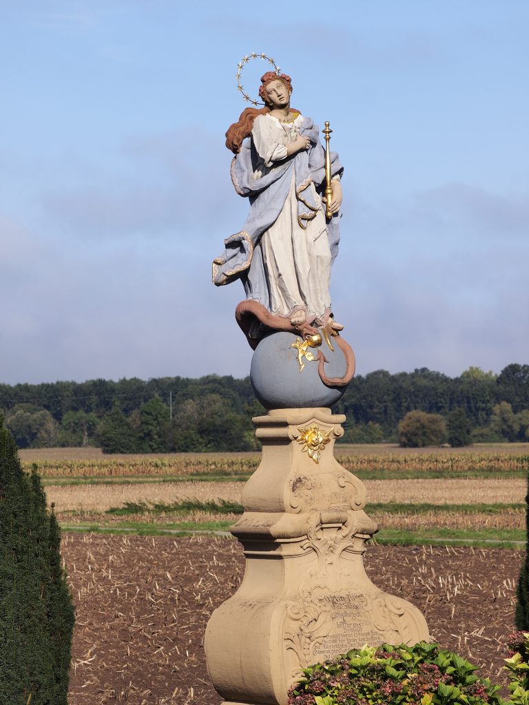 Die Restaurierung der Immaculata aus dem Jahre 1775 war im Jahre 2014 ein großes Anliegen des HVO. Der Restaurator, Luzius Kürten schreibt: Die Maria ist klassisch dargestellt mit Zepter und Nimbus. Sie steht auf einer Schlage und der Weltkugel, darunter befindet sich ein großer geschwungener Barocksockel mit der Inschrift „O Maria ohne Sünde empfangen bitt für uns“. Dass Maria in einer besonderen Weise von Gott erwählt und in einmaliger Weise begnadet ist, weil sie den Erlöser zur Welt bringen sollte, gehört zur ältesten Tradition der Kirche.