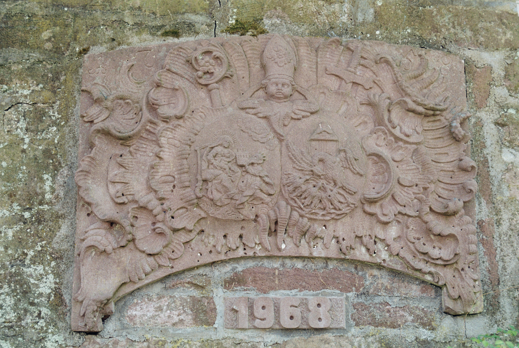 Wappenstein am Aufgang zum Pfarrhaus Oberschopfheim